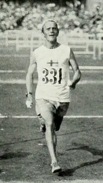 Jacobsson finishing the marathon in 1912 | |