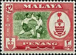 The earliest known mention of ‘silat’ in Misa Melayu, written sometimes between 1720 and 1786, was rather generic in nature and not specifically referring to the Malay martial arts. It was used as a generic term in describing the movements of kuntao as performed by Chinese folks.[11] In this regard, the word 'silat' is thought to originate from the composite of two words 'si' and 'elat'. 'Si' is a Malay article used with adjectives to describe people, and normally found in names and nicknames. While 'elat' is a verb means 'to trick', 'to confuse' or 'to deceive'. The derivative transitive verb 'menyilat' or 'menyilap' carries the meaning of an action to evade, to trick or to take an assault, together with a counterattack.[12] This implies that the term 'silat' is a generic term in origin, referring to any forms of martial arts that involve such movements, before it began to specifically refers to Malay martial arts. In the 19th century literary texts, reference to 'silat' as a specific martial art of Malay people began to appear, for example in Hikayat Pahang,[13] Hikayat Awang Sulung Merah Muda,[14] Hikayat Malim Deman[15] and many others.