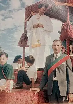 On Sunday 15 December 1940, Roman Catholic Bishop of Cairns, John Heavey, laid the foundation stone for a church to be dedicated to St John the Evangelist.[11] He returned on Sunday 3 August 1941 to perform the blessing and opening of the Gothic-style church.[12] The early priests at the church were Scalabrinians, followed by Augustinian priests. The Silkwood parish was established in 1946.[13]