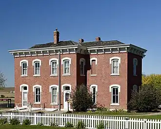 The two-story, 13-room, red brick house was built in 1872 by Simon E. Dow (Simeon E. Dow), who in 1869 co-founded Dow City and later became one of its leading businessmen.[2] In 1970, it was bought by the Crawford County Conservation Board to be restored and is now open for public tours.