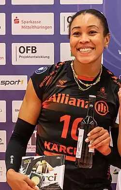 She made her debut in the United States senior national team at the 2018 Pan American Volleyball Cup, where she won the gold medal,[4][5] and in 2019 at the FIVB Volleyball Nations League.[6]
