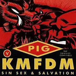 Sin Sex & Salvation (1994), is an EP released by KMFDM and Raymond Watts (as PIG). The artist for it is usually listed as KMFDM vs. PIG. It was recently re-released in 2024. Prior to then, none of the songs had ever been re-released in any other format since its initial release, except for "Fuck Me" which appears on a bonus disc entitled 'The Year of the Pig Collection' accompanying the Canadian release of the "Juke Joint Jezebel" Giorgio Moroder mixes maxi-single, and "Secret Skin" which appears on the 'Year of the Pig' 12" four song vinyl pressing containing "Juke Joint Jezebel" as the caveat. Both were released in 1995 and are OOP as well.