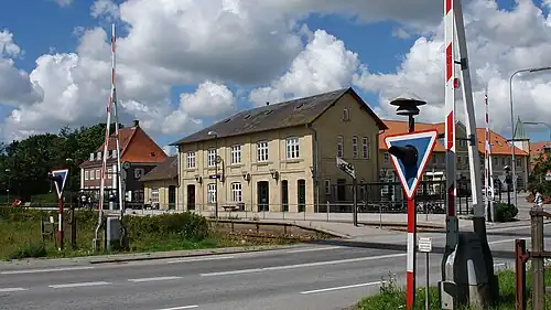 The station building from 1871 was built to designs by the Danish architect Niels Peder Christian Holsøe (1826–1895), known for the numerous railway stations he designed across Denmark in his capacity of head architect of the Danish State Railways.[7][10]