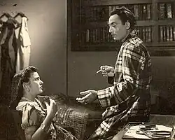 Sindoor is a 1947 Hindi social film directed by Kishore Sahu.[1] The film was produced Sasadhar Mukherjee Productions for Filmistan and had the actor Mehmood in one of his early films.[2] The story, dialogues and part of the lyrics were written by Kishore Sahu. One of the lyricists was Qamar Jalalabadi, with music composed by Khemchand Prakash. The film starred Kishore Sahu, who played the hero,[3] with Shamim Bano, Paro Devi, Gulab, Mehmood, Pratima Devi, Sushil Sahu and Moni Chatterjee.[4]