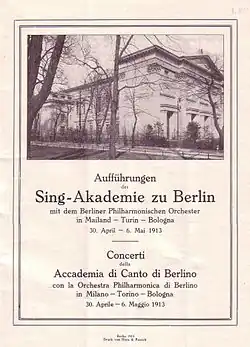 Program book for the concert held in Milan, accompanied by Berlin Philharmonic, 1913