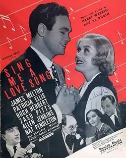 Sing Me a Love Song is a 1936 American musical film directed by Ray Enright and written by Sig Herzig and Jerry Wald. The film stars James Melton, Patricia Ellis, Hugh Herbert, ZaSu Pitts, Allen Jenkins and Nat Pendleton. The Warner Bros. film premiered in New York City on Christmas Day 1936 and went into general release on January 9, 1937.[1][2][3]