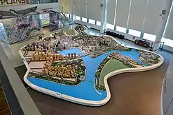 The gallery, which had an initial cost of 4.2 million Singapore dollars, was opened on 27 January 1999 by Lim Hng Kiang, who was National Development Minister at the time.[2] The gallery was initially projected to attract 36,000 visitors a year over the first three years of its existence, most of whom were expected to be students or local community groups.[2] In 2004, the gallery underwent a major renovation of 80% of its exhibits. Upon its reopening on 3 December 2004, the Gallery was renamed the Singapore City Gallery. The Gallery's key exhibit, the Central Area Model, was also expanded to include areas which were formerly not shown, such as Orchard Road, Kampong Glam, Little India, Bras Basah, and Bugis. The model was also updated to include the latest plans for Marina Bay.[4] In 2008, the Gallery received its millionth visitor.[5] In 2011, the gallery was redesigned again, and reopened in August of that year, to include new exhibits such as a 270-degree panorama of life in Singapore and an 8-player multimedia game on urban planning. This latest version won honours in the Singapore Design Award 2012 for both the Events/Exhibitions category and the Multidisciplinary Design category.[6][7] The Gallery now receives about 150,000 visitors annually.[3]
