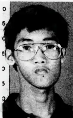 The victim was identified as 45-year-old Tan Chin Liong, a lecturer from the Electronics and Communication Engineering department of the polytechnic. He sustained a total of three stab wounds, with one on his abdomen and two on his chest.[2] Preliminary investigations by the Singapore Police Force also determined that the possible motive behind Tan's death was robbery and Tan was possibly attacked at around 5:00 a.m. to 7:00 a.m., at most a couple of hours before the body was discovered. The police also noticed a blood trail coming from the victim's body, and followed the bloodstains to the female toilet on the sixth floor. Inside, they arrested a man who was hiding inside one of the cubicles. The young bespectacled man was wearing only a pair of white shorts, and two bags were seized from the toilet; one of them contained a bloodstained shirt and a knife. The suspect was also identified as a former student of the polytechnic, having graduated early in 1990, and he was also a deserter of National Service.[3][4][5]