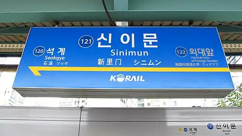 - ^ a b "신이문역" (in Korean). KRIC. Retrieved 24 September 2015.