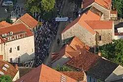 The Sinjska alka (Croatian pronunciation: [sîːɲskaː âːlka]) is an equestrian competition held in the Croatian town of Sinj.[1] It commemorates a Croatian–Venetian victory in the Ottoman–Venetian war in the night of August 14, 1715, in which around 700 professional Venetian soldiers and 100 locals defended Sinj against an Ottoman army led by Mehmed-paša Ćelić of at least 40,000.[2] Because of this victory, the Venetians retained control over Sinj and integrated it into the Venetian Dalmatia in accordance to the terms of the Treaty of Passarowitz signed in 1718.[3][4]