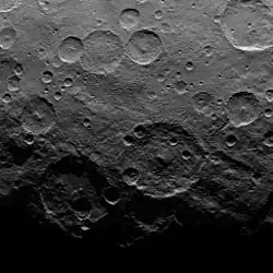 ![]() Dawn photo showing selected crater features, Sintana crater is on top | |