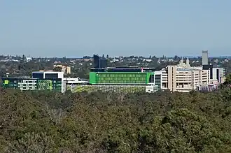 ![]() Sir Charles Gairdner Hospital viewed from Kings Park; green buildings are the new children's hospital | |
