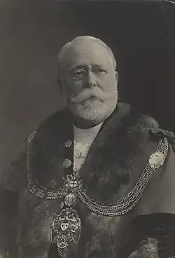 In 1921, Baddeley was appointed the 593rd Lord Mayor of London.[5] After the end of his tenure in the following year, he was created a baronet, of Lakefield, in the Parish of St Mary, Stoke Newington, in the County of London on 24 November.[6] Baddeley was a Commander of the Swedish Royal Order of Vasa and of the Russian Order of St Anna.[3]