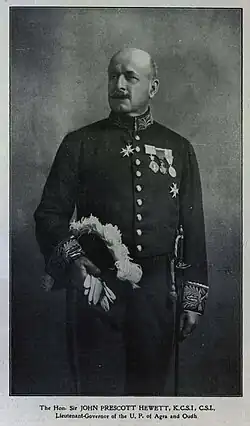 Sir John Prescott Hewett, GCSI, KBE, CIE, GCStJ (25 August 1854 – 27 September 1941) was a British Indian civil servant who served as Lieutenant Governor of the United Provinces of Agra and Oudh and later as a Conservative MP for Luton.
