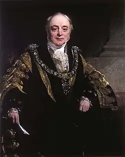 Musgrove was the only son of John Musgrove, of Hackney, a London merchant. He was an auctioneer and house agent and had made his fortune by 1824 by taking advantage of rising property prices in London. He served as Master to The Clothworkers' Company in 1843–44, and again in 1862.[2] He was Sheriff of London between 1843 and 1844 and Lord Mayor of London between 1850 and 1851.[3] He was created a baronet, of Speldhurst in the County of Kent and of Russell Square in the County of Middlesex, in 1851.[4]