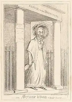 Wood was a member of the Worshipful Company of Fishmongers, by tradition the leading Whig livery company;[15][16] he became its Prime Warden. He served as Sheriff of the City of London for 1809.[17] He won popularity by encouraging resistance to unpopular government measures and by his vigour as first magistrate in seeking to suppress the London underworld.[1]