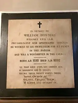 - ^ a b c d Hale-White, W. (1935) "Sir William Bowman", pp. 177–188; in Great Doctors of the Nineteenth Century, Edward Arnold & Co