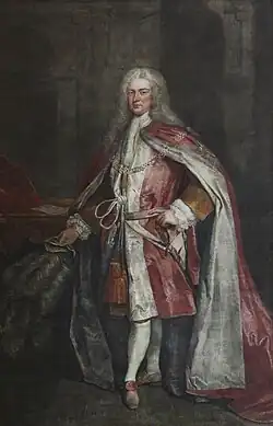Making friends with the Pelhams, he was appointed Vice-Treasurer of Ireland for life in 1746. Acting on the committee of management for the impeachment of Lord Lovat in 1747, he won the applause of Horace Walpole by moving that prisoners impeached for high treason should be allowed the assistance of counsel. In 1748 he was elected a Fellow of the Royal Society.[3] He was a founding Governor of the Foundling Hospital, which worked to alleviate the scourge of child abandonment.[1]
