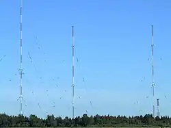Sitkūnai Radio Station is a large facility for medium wave and shortwave broadcasting at Sitkūnai, Lithuania. The decision to build a new transmitting centre near the village of Sitkunai, about 17 km (11 mi) north of Kaunas was made by the Government of Lithuania in 1937. The building works started in 1939, and after completion, a 120 kW medium wave transmitter from Standard Telephones and Cables in the United Kingdom was ordered. However, the outbreak of World War II stopped the shipment. The empty transmitter buildings in Sitkunai survived the war with almost no damage and were used as a military compound by the German army in 1941–1944, and later as a primary school. Because the Soviet Lithuania was badly covered by radio signals, the Soviet authorities decided to continue the building work at Sitkunai and turn the site into a main shortwave and medium wave transmitting centre. During 1951 and 1952 two 50 kW shortwave transmitters, dismantled from an East German utility site as war reparations were installed in Sitkūnai. Several curtain antennas were erected and one 150 kW mediumwave transmitter was installed (665 kHz). During the January Events in 1991, Sitkūnai Radio Station was among those transmitting sites broadcasting to the world about the Soviet military actions in Vilnius when 14 civilians were killed and more than 600 injured.[1]