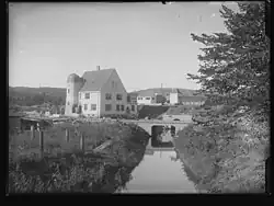 Skøyen Station was one of five original stations on the Drammen Line, which opened on 7 October 1872. The line was originally narrow gauge, single track and lot electrified.[1] The station building was designed by Georg Andreas Bull in Swiss chalet style. It was located on the east of Drammensveien.[2] The original building has since been demolished.[1]