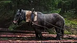 In the Belgian Ardennes (province of Luxembourg), around 90% of the first three clearings in coniferous woodlands are now harvested using horses, which can easily and profitably remove these light woods.[6]