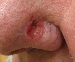 20. ^ Dubas LE, Ingraffea A (February 2013). "Nonmelanoma skin cancer". Facial Plastic Surgery Clinics of North America. 21 (1): 43–53. doi:10.1016/j.fsc.2012.10.003. PMID 23369588.