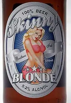 Skinny Blonde is a low-carb blonde ale started by The Vines drummer Hamish Rosser, winemaker Richie Harkham and artist Jarod Taylor.[1] The beer is currently sold in Australia, and took home the 'Peoples Choice' awards at the 2008 Australian Beer Festival held at The Rocks in Sydney.[2]