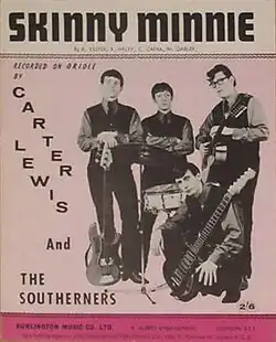 1964 sheet music cover for Carter-Lewis recording featuring Jimmy Page, Burlington Music, London.