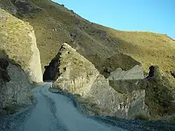 At the beginning of the gold rush, no track or road was present in Skippers Canyon. As the gold miners travelled through the canyon with their horses, tracks were formed. They were rough and steep but established ways to Deep Creek, Māori Point and Skippers were in use in 1863.[4] Those tracks however were unsafe and those who tried to take packhorses sometimes lost them and their supplies.