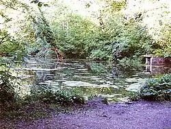 The wood was originally used by Skipton Castle primarily for hunting and fishing, although during the 18th and 19th centuries, the wood was also used to provide timber, building stone and water.[1] The timber and stone was moved out of the wood via Springs Canal (a small branch off the Leeds and Liverpool Canal). The water was obtained by damming Eller Beck to form Long Dam, which in turn fed a small reservoir called Round Dam, also known as Mill Dam or Mill Pond. The water was used to power the former sawmill and corn mill located by the castle. Public access to the wood was first allowed by the owners of the castle in the late 19th century.[2] When the woods were purchased by a private concern in 1966, they were closed until May 1971, when public access was granted again. The woods were leased to the Woodland Trust in October 1991.[3][4]