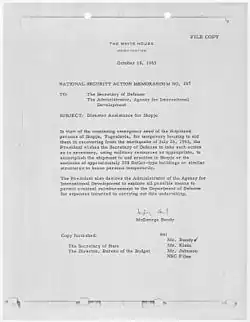 - ^ John F. Kennedy Library: National Security Action Memorandum No.267 Disaster Assistance for Skopje