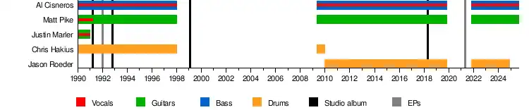 - Al Cisneros – bass, vocals, waterpipe (1990–1998, 2009–2019, 2021–present)