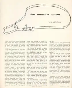 In 1957 Jan and Herb Conn wrote an article titled "the versatile runner" with a long list of uses, which is still quite accurate: