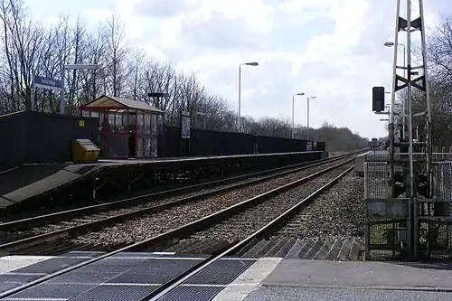 Smithy Bridge railway station serves the village of Smithy Bridge and Hollingworth Lake near Rochdale in Greater Manchester, England. The station is on the Caldervale Line 12+34 miles (20.5 km) north of Manchester Victoria on the way to Leeds.
