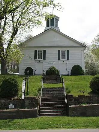 In 1870, the first formal church organization and structure was established in Snowville under the leadership of Asiel Snow. Known as Snowville Christian Church, the building had a large balcony for African Americans.[15] The large bell was donated by Miss Mary Snow just prior to her death. It tolled, for the first time, to announce Miss Snow's death. When tolling was a practice, a death would be announced by the tapping of the bell three times by an attachment especially made for that purpose; this was then followed by individual strokes, one for each year of life, to indicate the age of the deceased. The Snowville bell was famous for its unusual toll, which could be heard 7 miles (11 km) east in the town of Auburn.