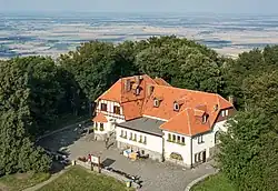 The main attraction of the area is the Mount Ślęża, one of the 28 peaks of the Crown of Polish Mountains. The name of the region Silesia comes from the name of that mountain. Now it is under reservation as ”Góra Ślęża landscape and geological reservation park”. With its 718 m.s.l. is the highest peak of the Sudetes Foreland. Its specific microclimate allows develop of the large species of Fauna and Flora. In ancient time (bronze) it was the Pagan Solar Cult center. The Christianization of the territory begins in the 10th century. The old Tourist House of PTTK and the 19th-century Church of the Visitation of Mary are located at the sight.