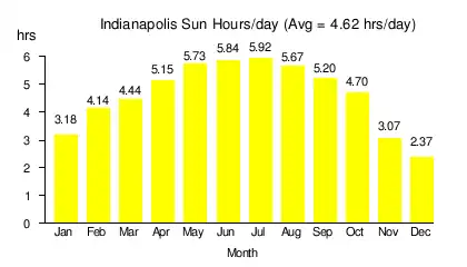 In 2015, Indiana ranked 18th among U.S. states for installed solar power with 136 MW of photovoltaic panels.[2] An estimated 18% of electricity in Indiana could be provided by rooftop solar panels.[3]