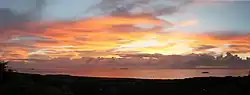 Sunrise over Solitary Islands Marine Park, NSW, Australia. Left to Right: South West Solitary Island, South Solitary Island, Split Solitary Island
