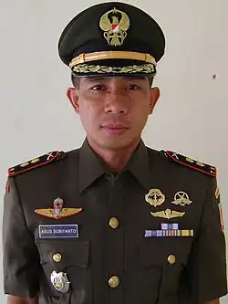 • Widi Prasetijono: Like Agus, Widi was also a member of Kopassus, and the military district commander during the last two years of Joko Widodo's mayoral term (2011–2012). After Joko Widodo became president, he appointed Widi as his aide-de-camp, serving until 2016. He then commanded the Surakarta (Warastrama) Military Area, Central Java (Diponegoro) Military Region, and the commanding-general of Kopassus.[5] By December 2023, he had already become commander of the Army Doctrine, Education and Training Leadership Command and the only lieutenant general in his class of 1993.[17]