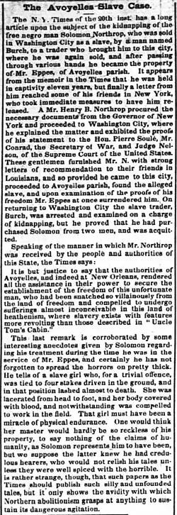 "The Avoyelles Slave Case", The Times-Picayune, February 6, 1853