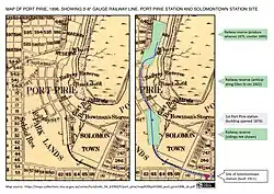 * In 1937, one of the two narrow-gauge tracks along Ellen Street was made dual-gauge as far as the station by the addition of a broad-gauge rail.