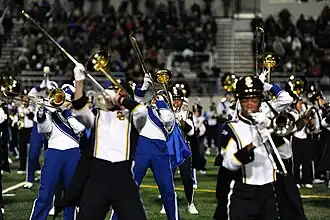 During the summer and fall, all students enrolled in the school's band course perform with the full marching band. The group hosts a "Band Bash" every year,[32] during which local marching bands perform. The band has performed during halftime shows for the Cleveland Cavaliers and Cleveland Browns, as well as performed the national anthem for the Cleveland Indians pregame.[31][33][34] There is a voluntary pep band that plays at school rallies and athletic events.