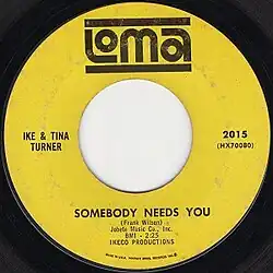 "Somebody Needs You" is a song written by Motown songwriter Frank Wilson. It was originally released as a non-album track by R&B duo Ike & Tina Turner on Loma Records in May 1965. In 1966, soul singer Darrell Banks reached the Billboard charts with his rendition.[1]