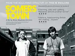 Somers Town is a 2008 British independent comedy-drama film directed by Shane Meadows, written by Paul Fraser and produced by Barnaby Spurrier. The film stars Thomas Turgoose, Piotr Jagiello, Kate Dickie, Perry Benson, and Elisa Lasowski. It was entirely funded by the train operating company Eurostar.[1]