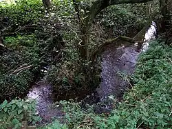 Alfred, Lord Tennyson, Poet Laureate, was born and brought up in Somersby, the son of the rector, and the fourth of twelve children.[3] When he wrote The Babbling Brook he was referring to a small stream here.[4] Other features of the local landscape are claimed as features mentioned in Tennyson's poetry,[5] such as "Woods that belt the grey hillside" and "The silent woody places by the home that gave me birth". In 1949 the copper beech was reported to be still standing at the former rectory which was mentioned in In Memoriam: "Unwatched, the garden bough shall sway,/The tender blossom flutter down,/Unloved, that beech will gather brown,/This maple burn itself away." The same poem also mentions leaving "the well-beloved place / Where first we gazed upon the sky".[6] In such poems as The Lady of Shalott[7] Tennyson uses the word "wold" for a hill in a sense found in Lincolnshire.[8] Tennyson wrote a few poems (e.g. "The Church-warden and the curate") in the local dialect.