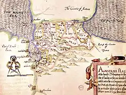 In the period after the Act for the Settlement of Ireland 1652, Col. John Gorges of Somerset, Coleraine was three times a member of parliament for the Counties of Derry, Donegal and Tyrone, before 1660. He was an officer of the New Model Army under Oliver Cromwell who settled at Somerset. In 1660 he was chosen by the Irish Society of London as their agent for their County Londonderry estates. He was later in the Irish House of Commons, replacing John Godbold in 1665.[1] His son John (died 1680) matriculated at Wadham College, Oxford in 1670.[2] Another son Henry died in 1727, and his widow in 1729, and the Merchant Taylors' estate in Macosquin and Aghadowey parishes, with Somerset House, was sold.[1]