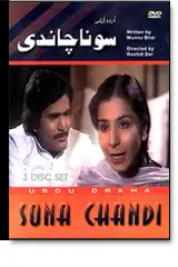 Sona Chandi (Urdu: سونا چاندی) is a classic Pakistani comedy-drama television serial that produced 48 episodes but released only 32 episodes by PTV . The story of the drama, written by Munnu Bhai, revolves around a couple who comes to a city in search of work so that they can pay off their debts. The role of Sona is played by TV actors Hamid Rana and Chandi (Sheeba Hassan). This simple, innocent couple, while performing their domestic-help jobs in different homes, ends up helping many people in solve their problems.[1][2]