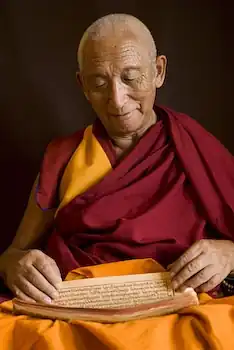 In India, he completed his studies for the degree of Geshe Lharampa which he received in 1980.[1] He also received the degree of Acarya from the Central Institute of Higher Tibetan Studies in Sarnath. He was appointed resident teacher at the Library of Tibetan Works and Archives in Dharamshala, India in 1978, where he taught Buddhist philosophy and practice, mainly to westerners. He has also taught in Japan, Australia, Great Britain, South Korea, Ireland, New Zealand, and Switzerland.