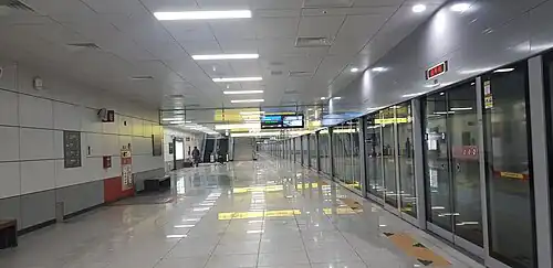 Songdo Moonlight Festival Park station (Korean송도달빛축제공원역) is a Line 1 subway station of the Incheon Subway in Yeonsu-gu, Incheon, South Korea. It opened on December 12, 2020 and became the terminal station at the same time.[1][2] It is designed to allow trains to pass the section beyond the station at a speed of 65 km/h when the route is extended later.