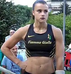 A fellow Roman like her compatriot Roberta Bruni, she also comes from the Artistic Gymnastics. At the pole vault, her junior personal best (4.42 m) is the second best junior world performance in 2013 and 49th at senior level.[1][2]